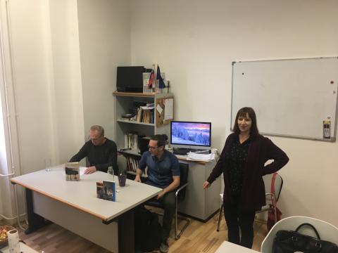 Srečanje s pisateljem in pogovor o strategijah pisanja in strategija prisotnosti v slovenskem literarnem polju.