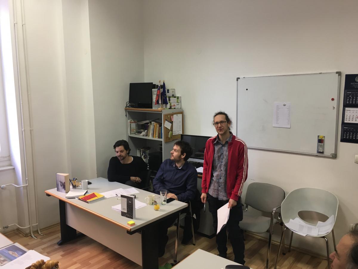 Na delavnici, ki je potekala 16. 2. 2019 smo prvo uro programa analizirali pesmi (2), ki so jih udeleženci napisali, navdahnjeni nad poezijo znanih avtorjev. Pri tem je mentor Ivan Antić izpostavil, kako pomembno je brati literaturo, ki nas navdihuje, in kratko očrtal tradicijo eruditske poezije in likpoeta doctus od antične književnosti do 20. stoletja. Udeležencem je na zgoščen način predstavljena tudi medbesedilnost kot tista disciplina literarne teorije, ki se ukvarja z vplivi v literaturi.